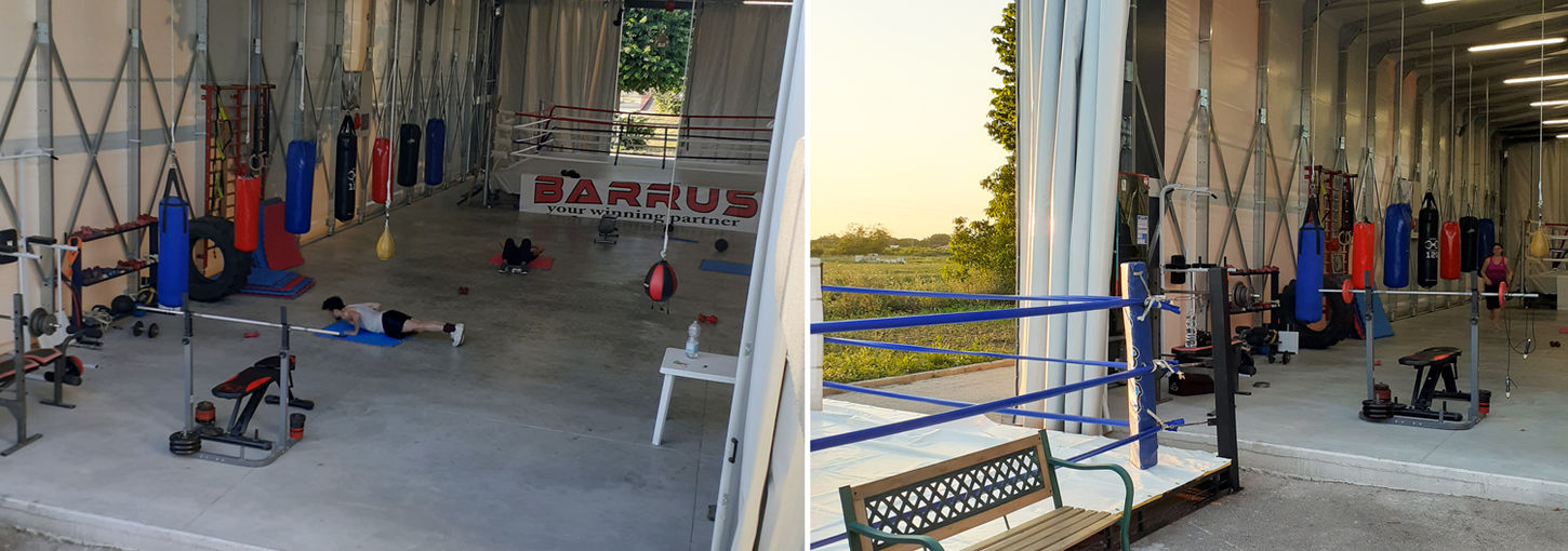 Capannone retrattile indipendente mod. KT. (dimensioni: larghezza 10m x lunghezza 25m x altezza utile 5m) con tenda scorrevole anteriore e posteriore.